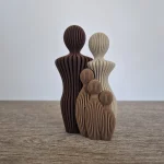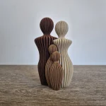 De vorm en kleuren sluiten aan bij de bestaande familiebeelden, zodat het geheel rustig blijft en vanzelf één geheel vormt.